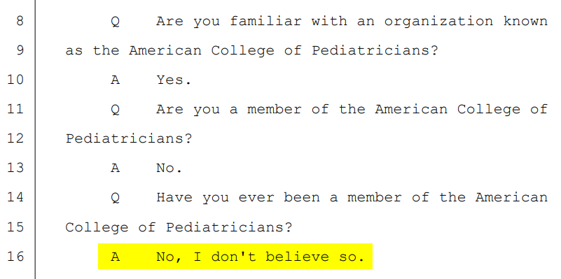 ← Florida AHCA’s anti-trans expert G. Kevin Donovan stated in deposition that he’s never been a member of the American College of Pediatricians hate group; the group’s financial records indicate he paid membership dues for several years